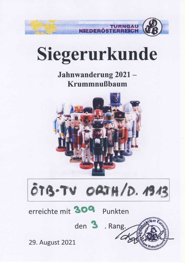 6 Turnvereine beteiligten sich an dieser Jahnwanderung. Die Konkurrenz aus Baden und Mödling war diesmal stärker, die zum Teil von zu Hause wegmarschierten (86 bzw. 85 km Luftlinie). Wir konnten uns diesmal als Dritte platzieren. Platz 2 wurde nur knapp verpasst.
